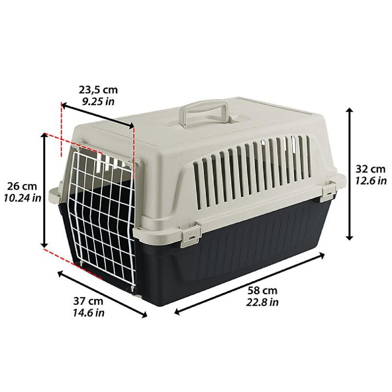 Το Atlas EL είναι η πιο βασική έκδοση των μεταφορέων μας για γάτες και μικρά σκυλιά και έχει πολλαπλές λειτουργίες. Το Atlas EL είναι εύκολο στη μεταφορά σας, χάρη στη σταθερή λαβή του, και είναι ιδανικό για ταξίδια με τα κατοικίδια ζώα σας με τα πιο συνηθισμένα μέσα μεταφοράς (αυτοκίνητο, τρένο, πλοίο, αεροσκάφος). Αυτός ο πλαστικός φορέας κατοικίδιων ζώων για γάτες και μικρά σκυλιά έρχεται πλήρης με μια συμπαγή πόρτα από ατσάλι με επικάλυψη από πλαστικό. Είναι πολύ ανθεκτικό, χάρη στο σύστημα στερέωσης με πλευρικά κλιπ ελατηρίου. Διαθέτει επίσης πλευρικές γρίλιες αερισμού, οι οποίες εξασφαλίζουν επαρκή αερισμό εντός του φορέα.